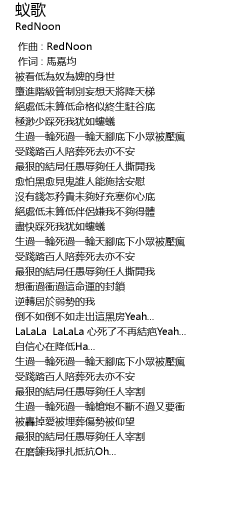 | 歌曲 | 蚁歌 |