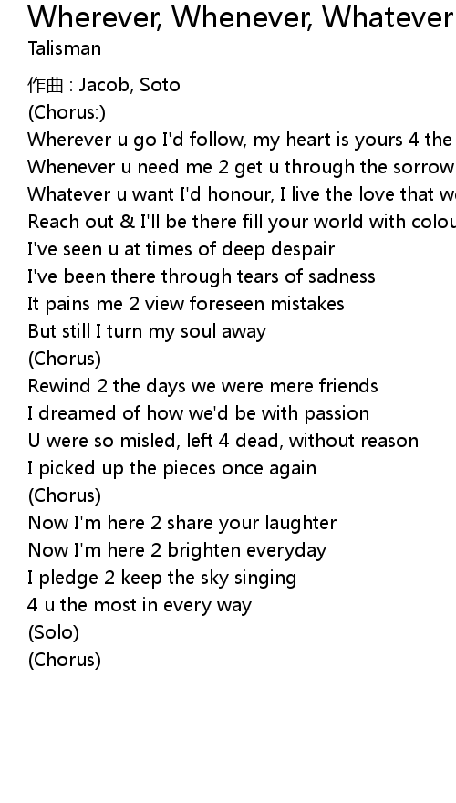 | Wherever u go I' d follow, my heart is yours 4 the taking | |