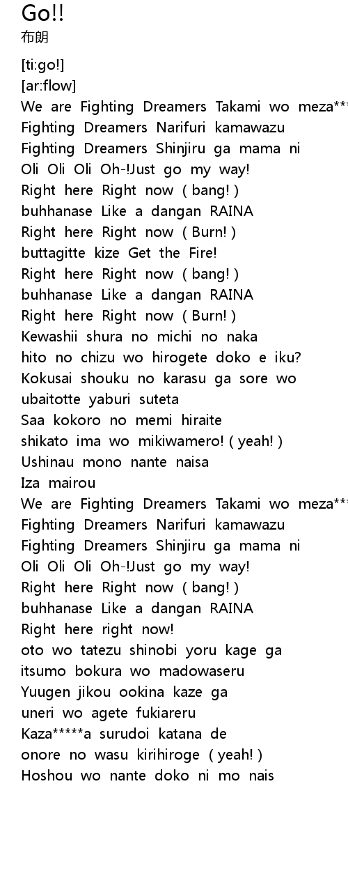 | [00:07.708] | We are Fighting Dreamers Takami wo meza*****e |