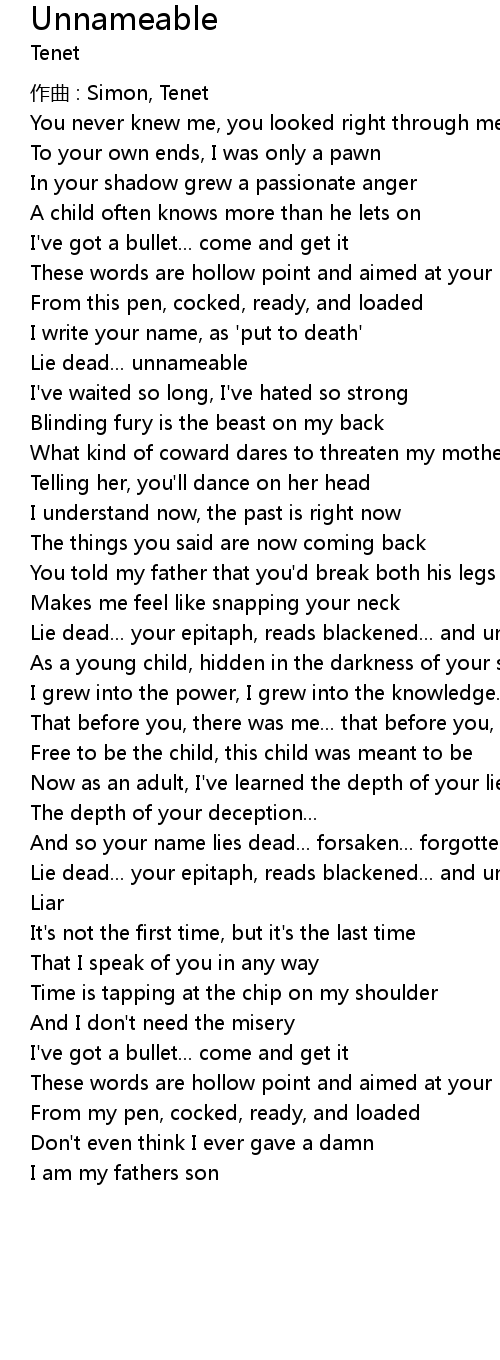 | Lie dead... your epitaph, reads blackened... and unnameable | |