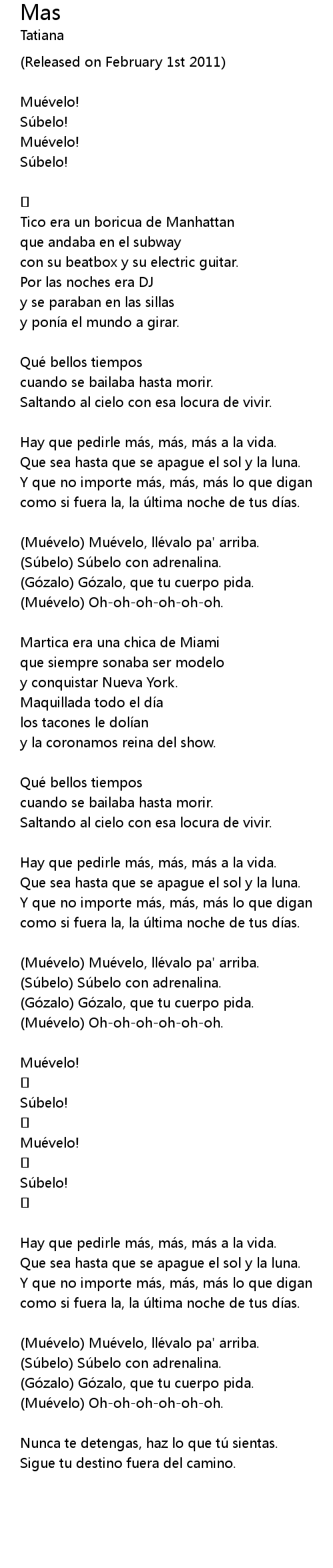 | Hay que pedirle ma s, ma s, ma s a la vida. | |