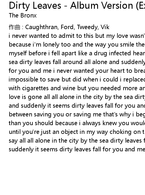 | 歌曲 | Dirty Leaves - Album Version (Explicit) |