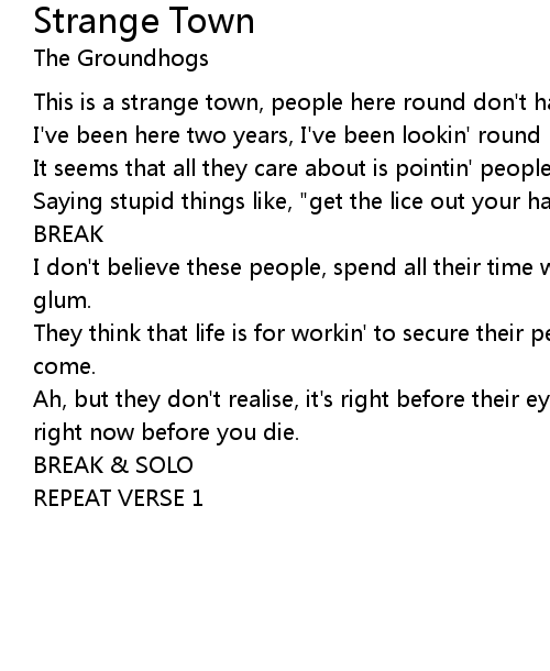 This is a strange town, people here round don't have no fun. |