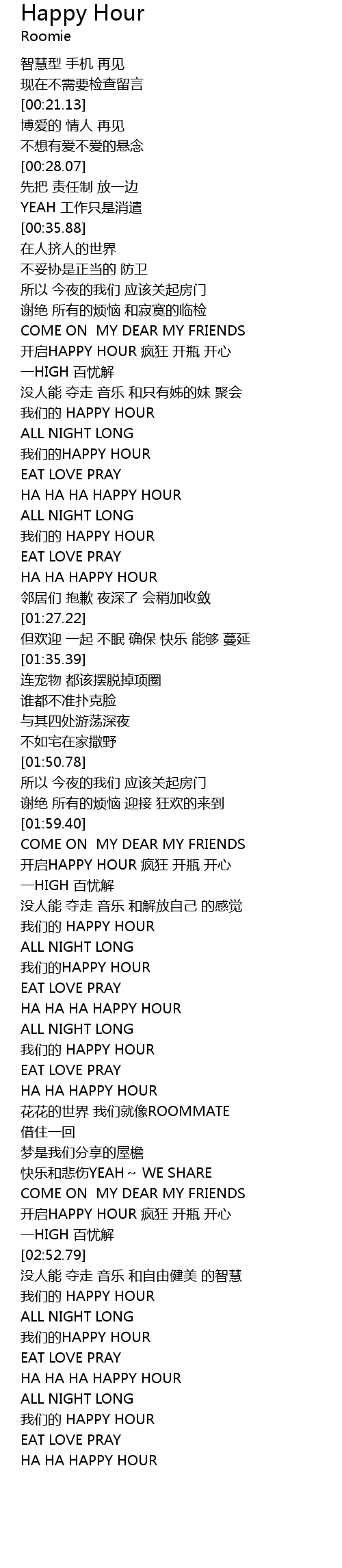 | [02:58.65] | 我们的 HAPPY HOUR |