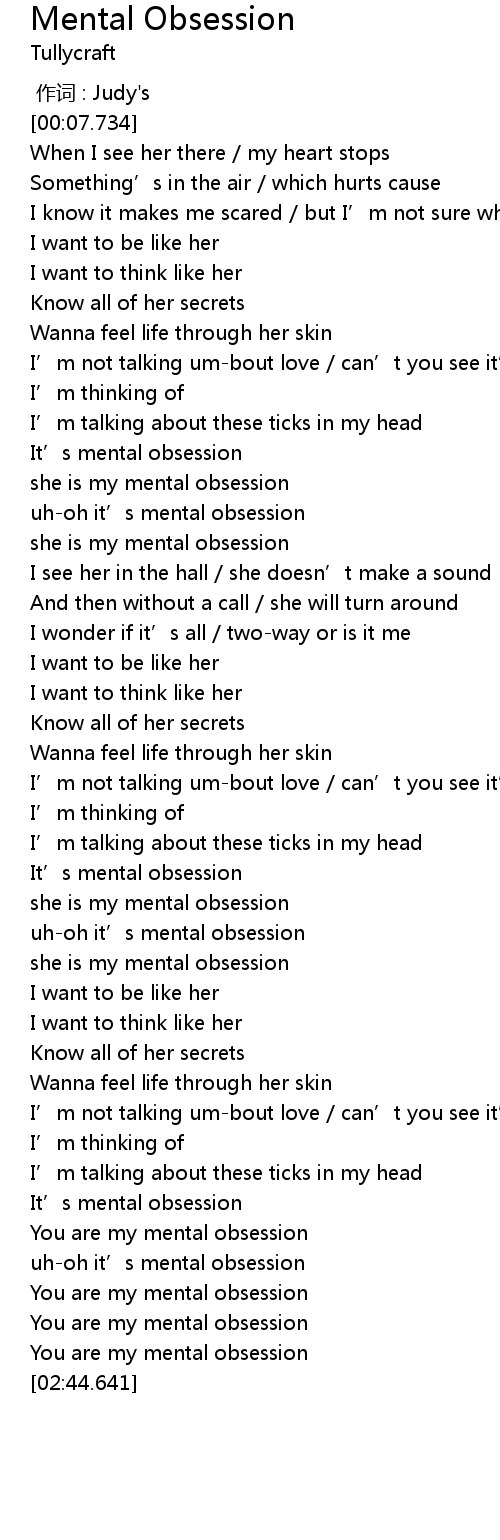 | [00:55.797] | uhoh it' s mental obsession |