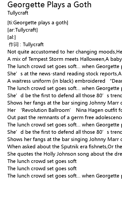 | [00:31.54] | The lunch crowd set goes soft when Georgette plays a goth |