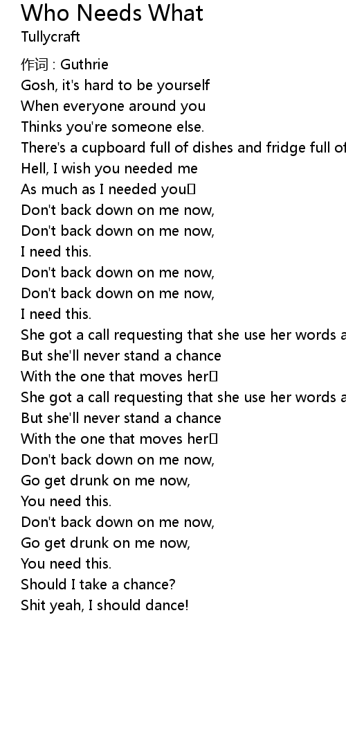 | 歌曲 | Who Needs What |