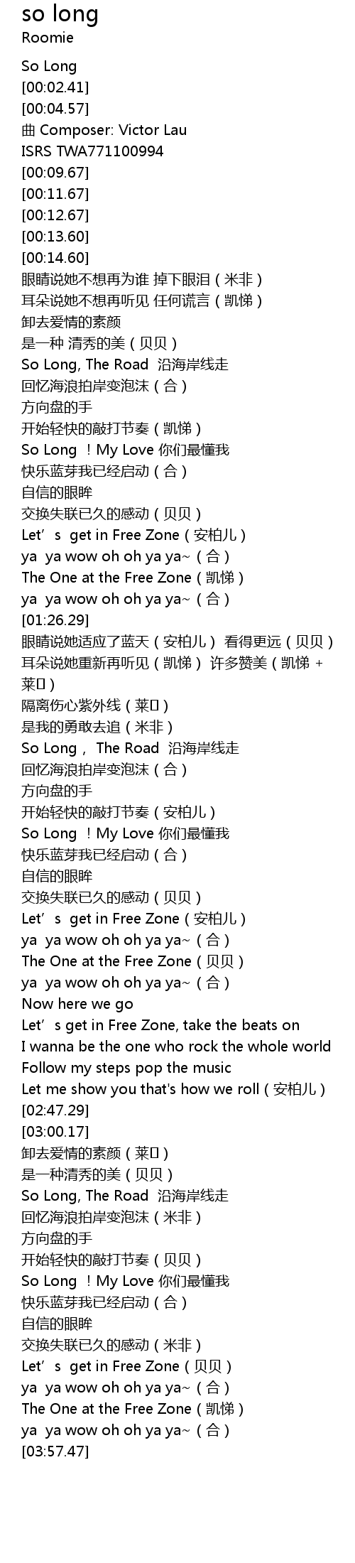 | [03:41.69] | Let' s get in Free Zone bei bei |