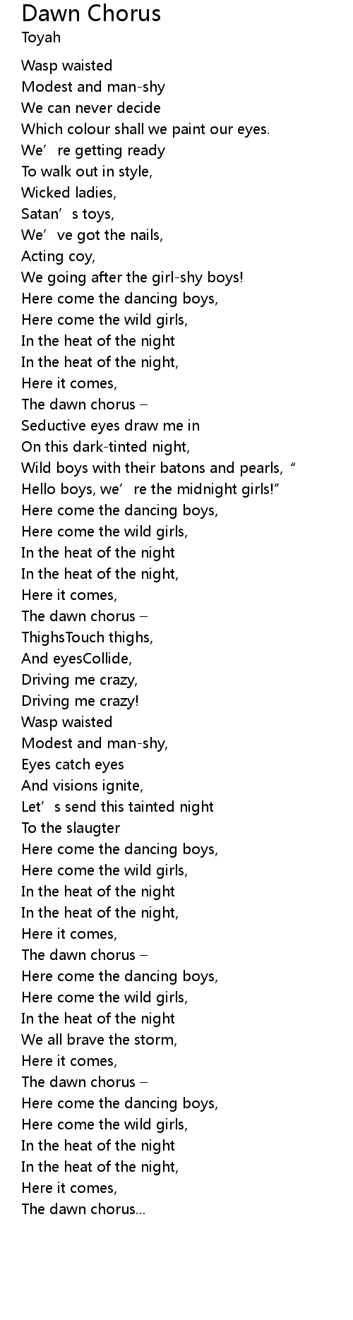 | 歌曲 | Dawn Chorus |