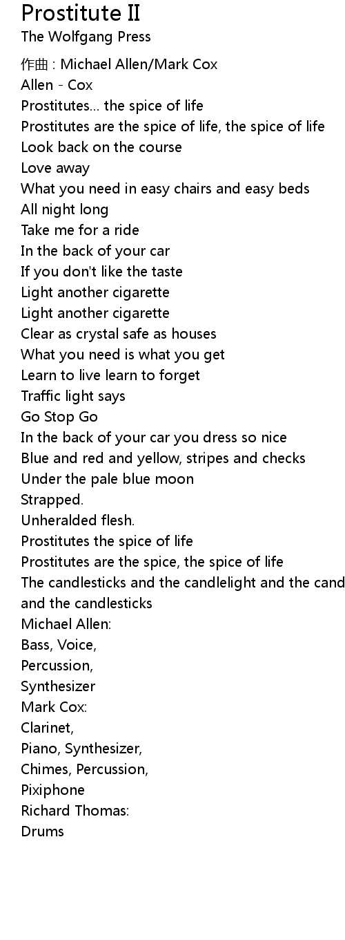 | Prostitutes are the spice of life, the spice of life | |