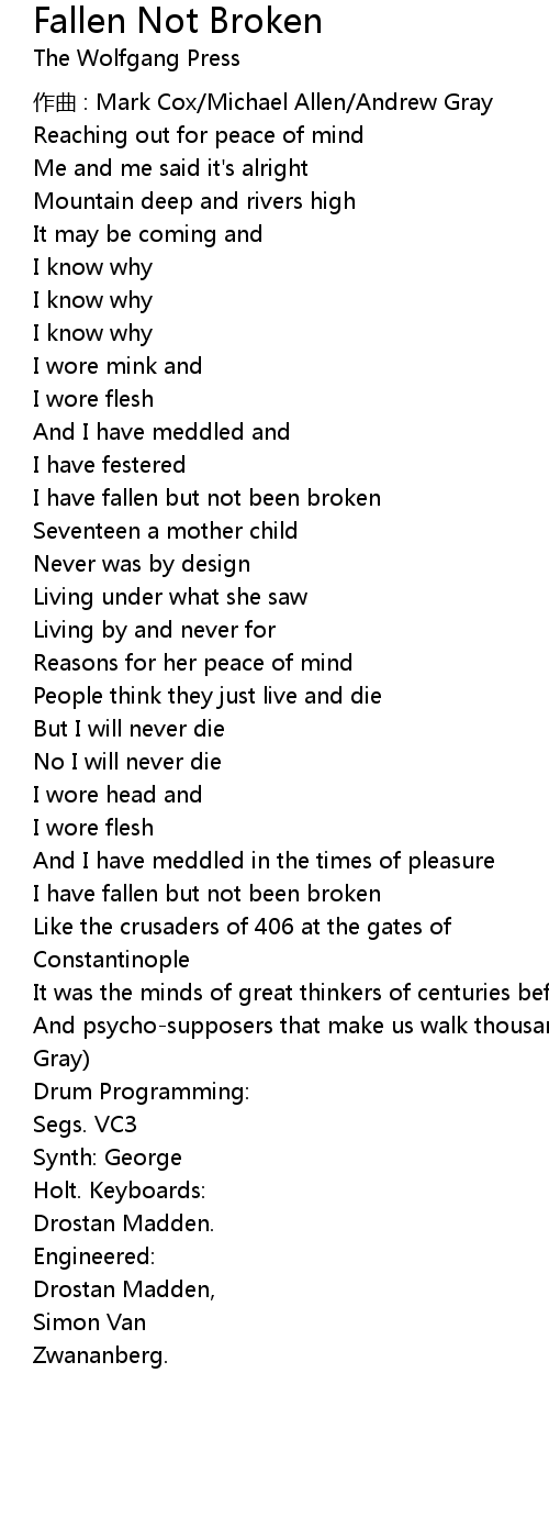 | zuò qǔ : Mark Cox Michael Allen Andrew Gray | |