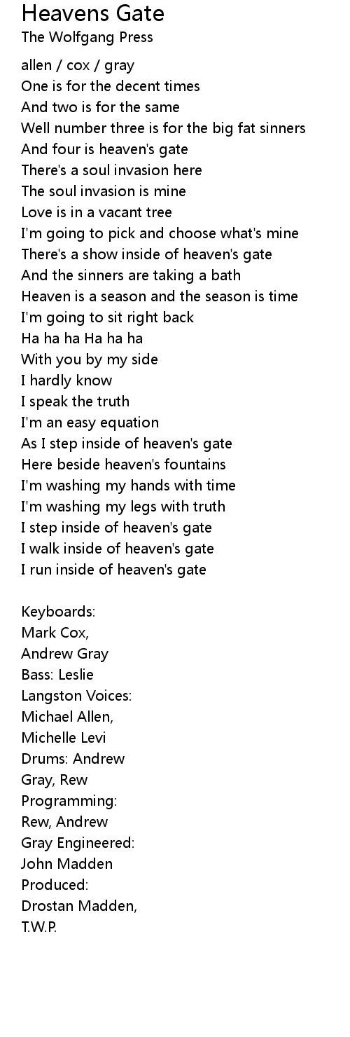 I step inside of heaven's gate |