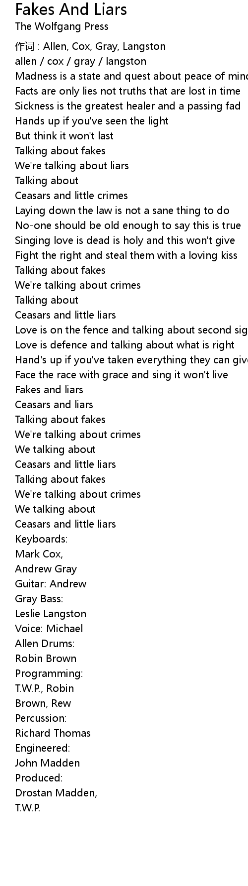 | 歌曲 | Fakes And Liars |