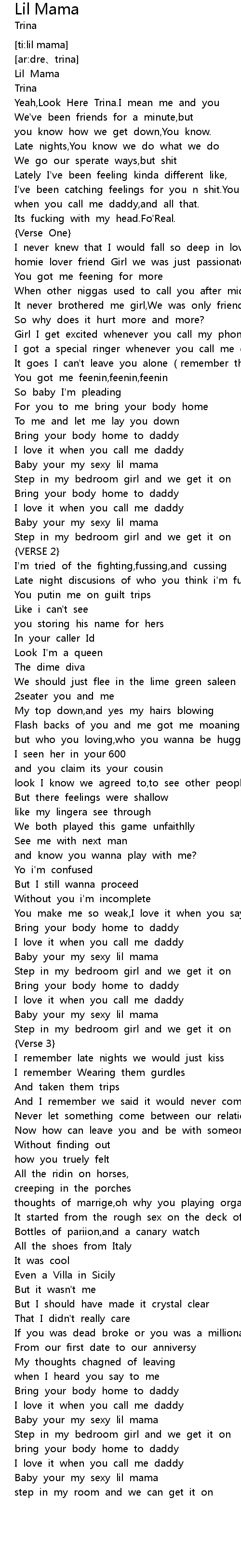 | [02:33.74] | Baby your my sexy lil mama |