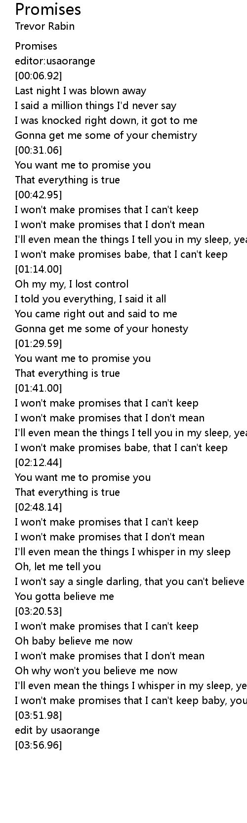 I won't make promises that I don't mean |