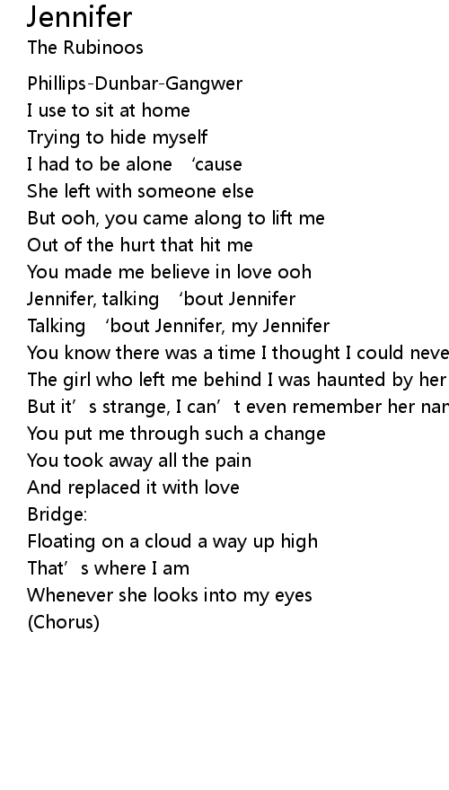 | Talking ' bout Jennifer, my Jennifer | |