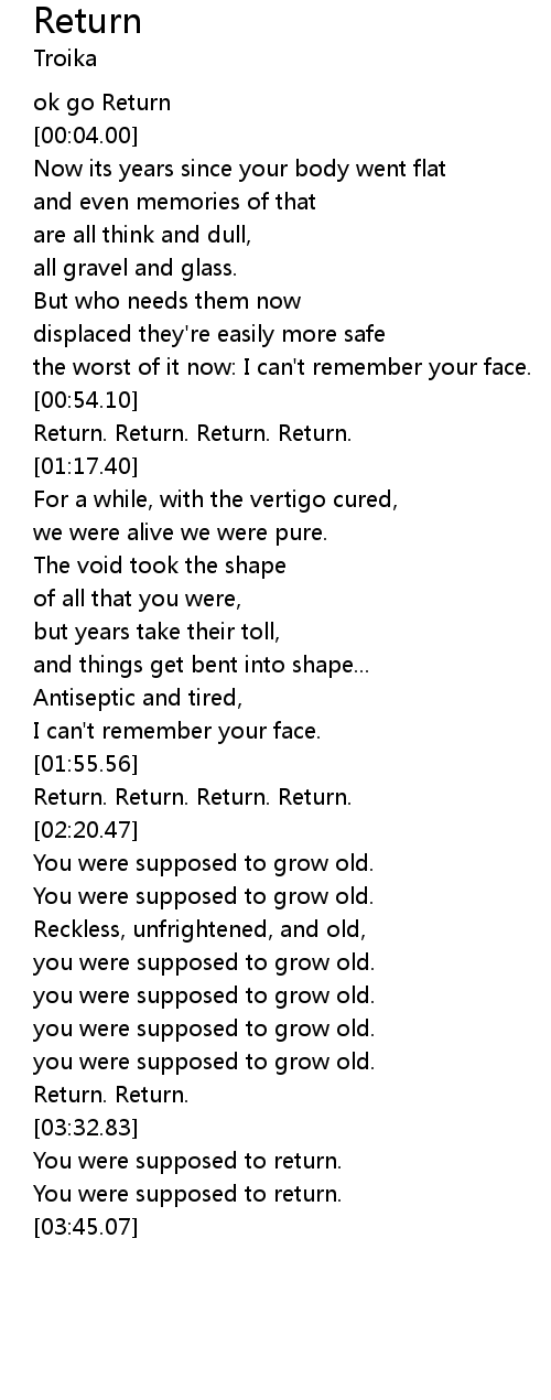 | [00:47.65] | the worst of it now: I can't remember your face. |