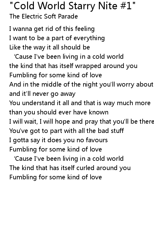 | ' Cause I' ve been living in a cold world | |