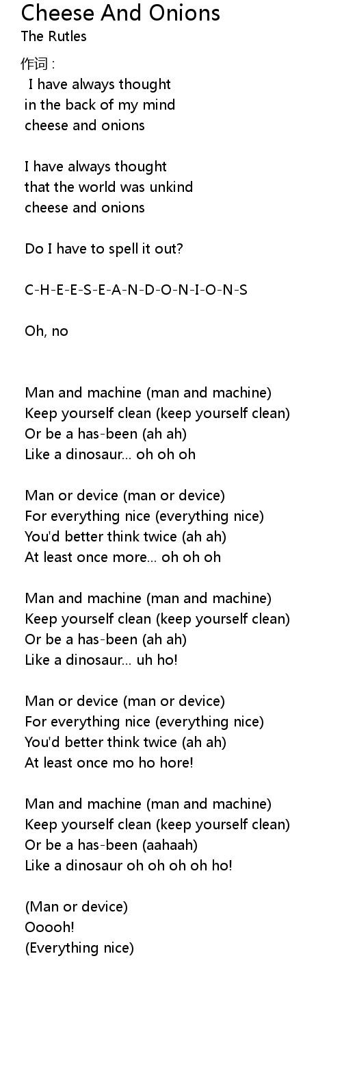 | 歌曲 | Cheese And Onions |