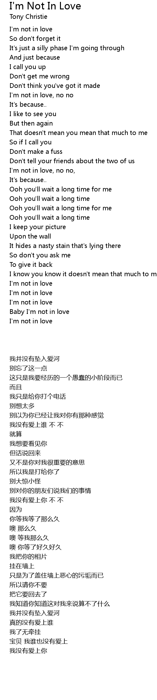 I'm not in love, no no |