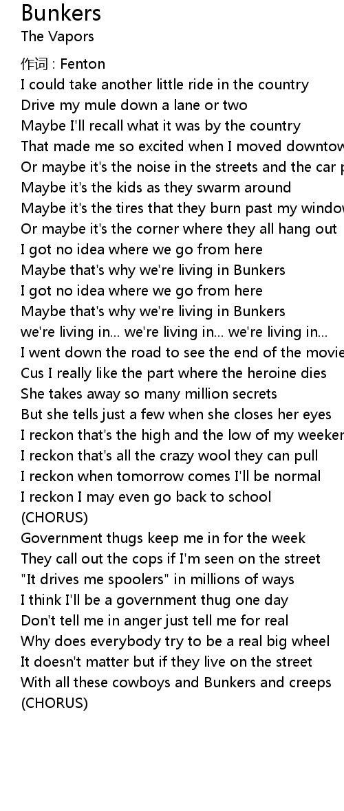 | 歌曲 | Bunkers |