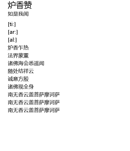 | [03:25.77] | 南无香云盖菩萨摩诃萨 |