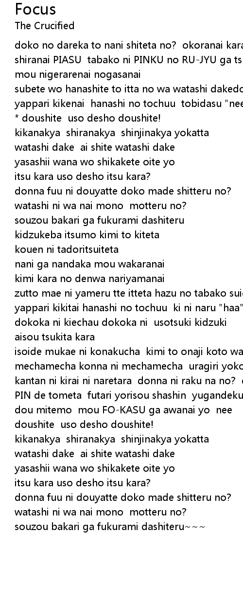 [03:20.41] dou mitemo mou FO-KASU ga awanai yo nee