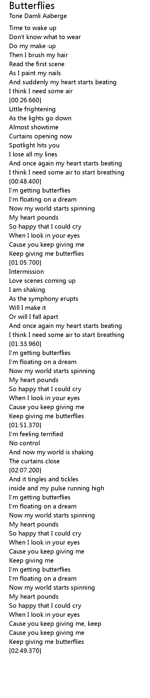 | [02:12.500] | I'm getting butterflies |