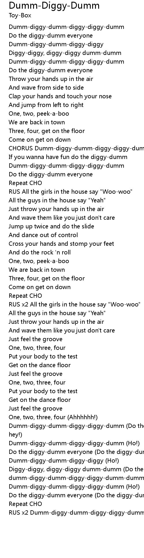 | Dumm-diggy-dumm-diggy-diggy-dumm (Do the dumm-diggy-dumm-diggy-diggy-dumm-dumm, hey!) | |