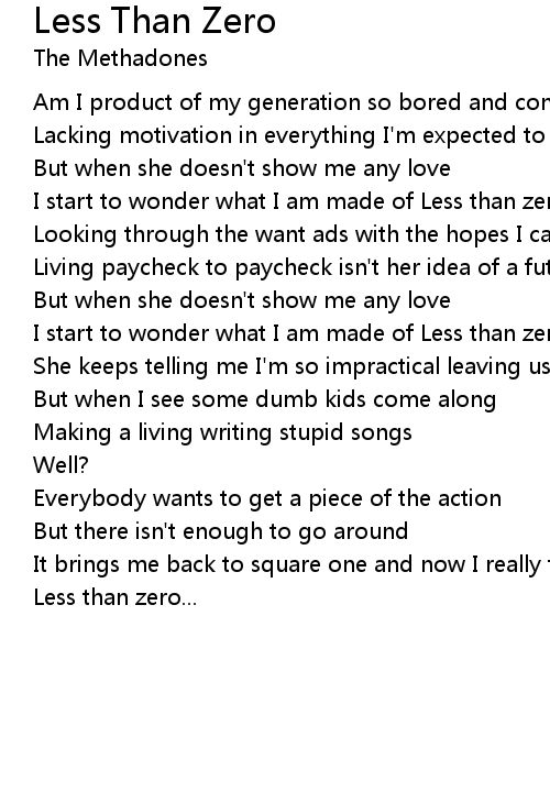 I start to wonder what I am made of Less than zero... |