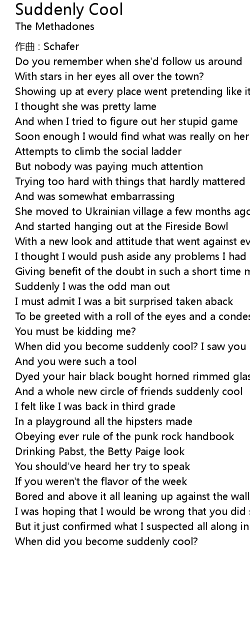 | When did you become suddenly cool? |