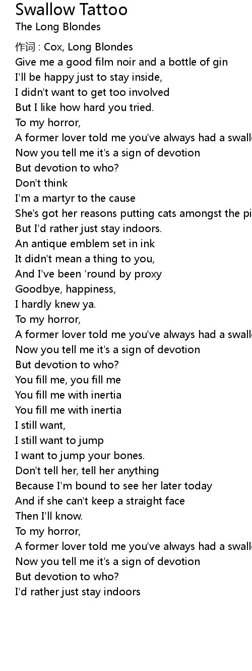 | 歌曲 | Swallow Tattoo |