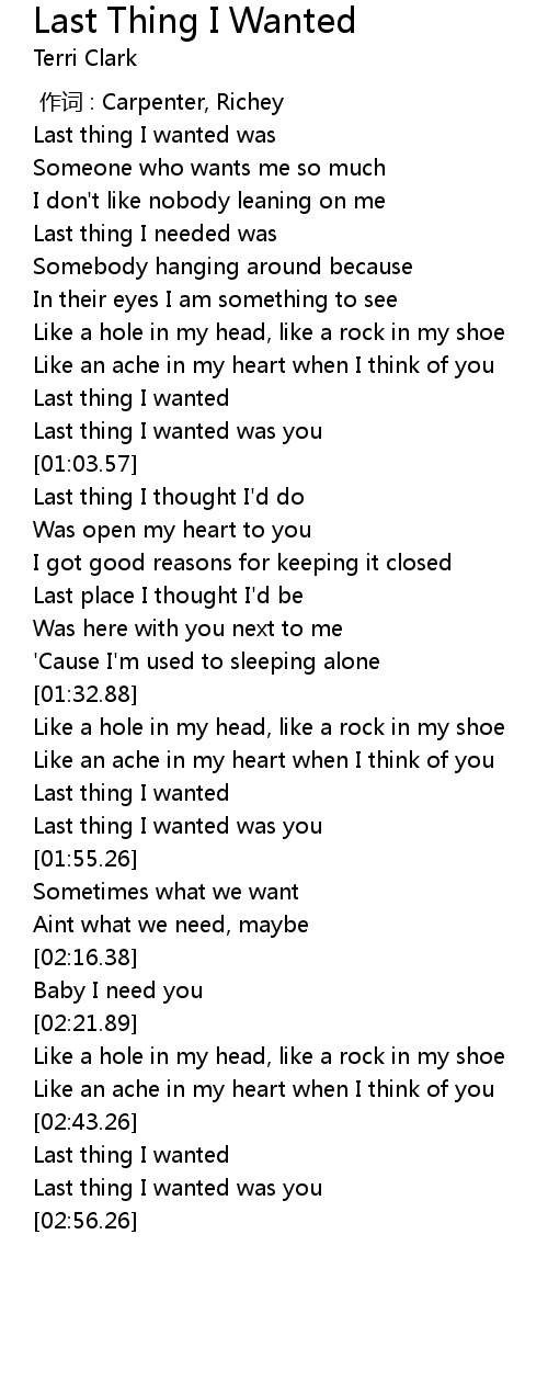 | [00:42.76] | Like a hole in my head, like a rock in my shoe |
