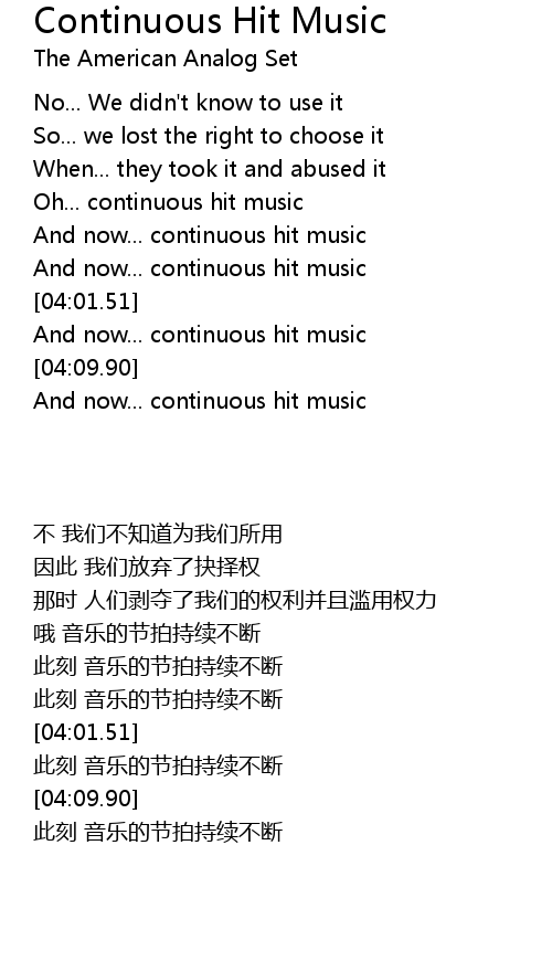 | [03:39.05] | 哦 音乐的节拍持续不断 |