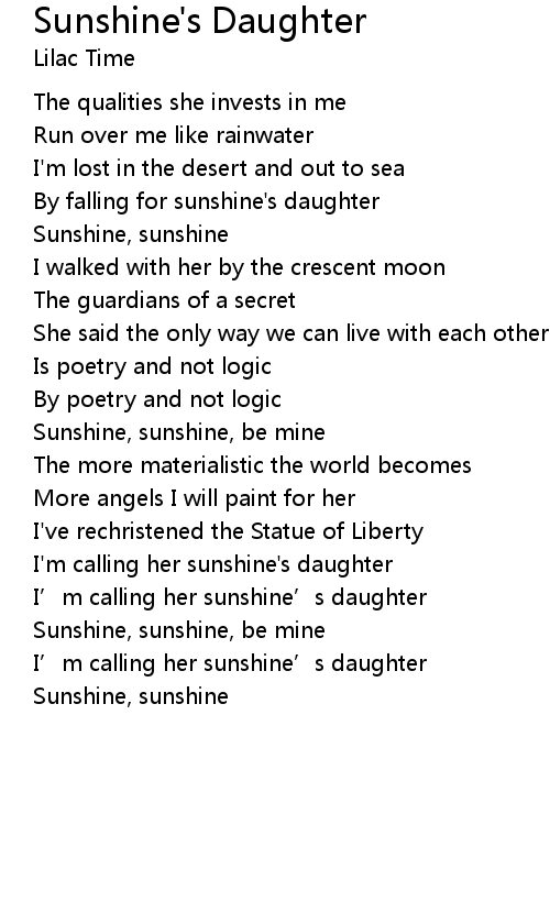 | Sunshine, sunshine, be mine | |