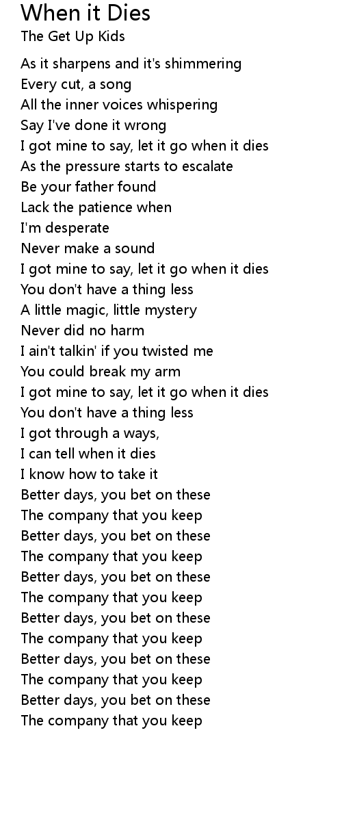 I can tell when it dies |