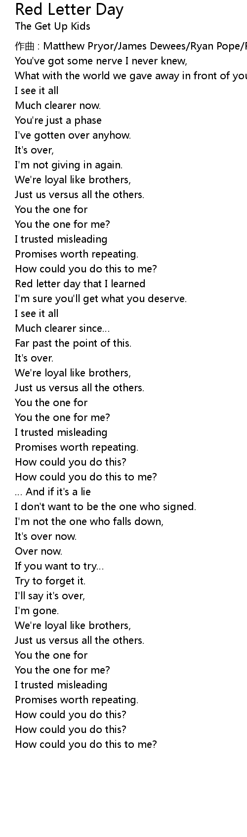 | 歌曲 | Red Letter Day |