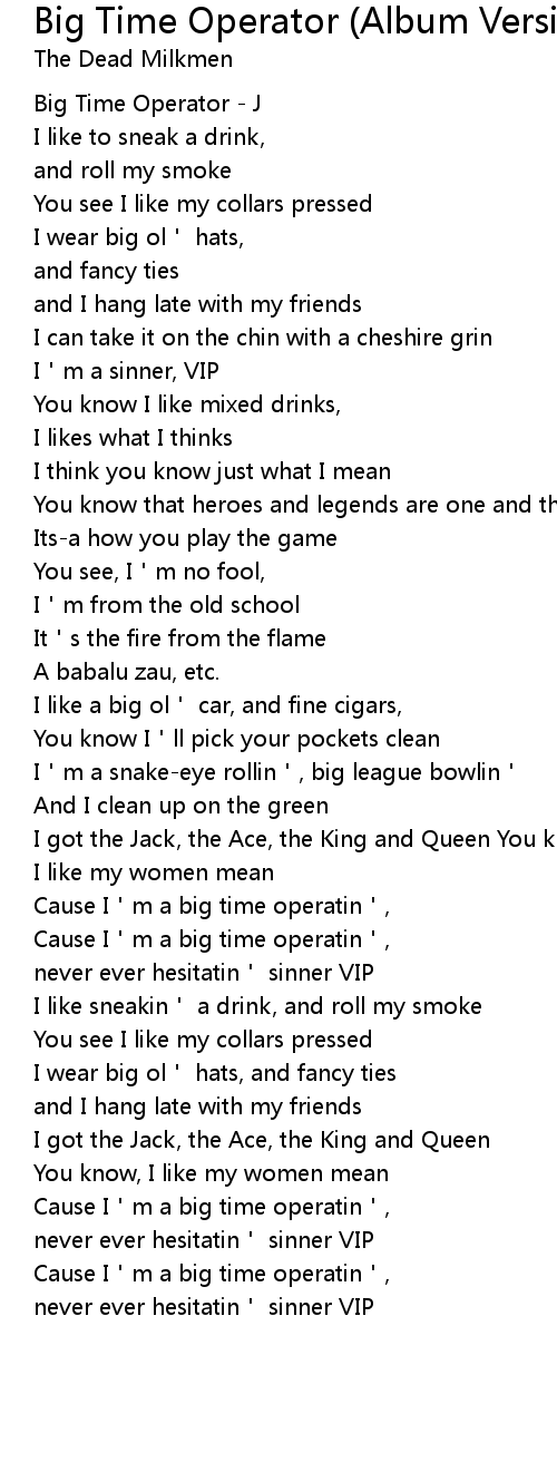 | [02:30.65] | I wear big ol' hats, and fancy ties |
