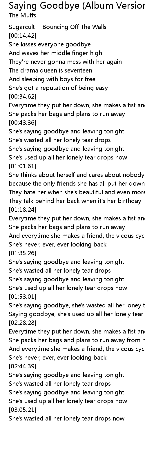 | [02:53.00] | She's saying goodbye and leaving tonight |