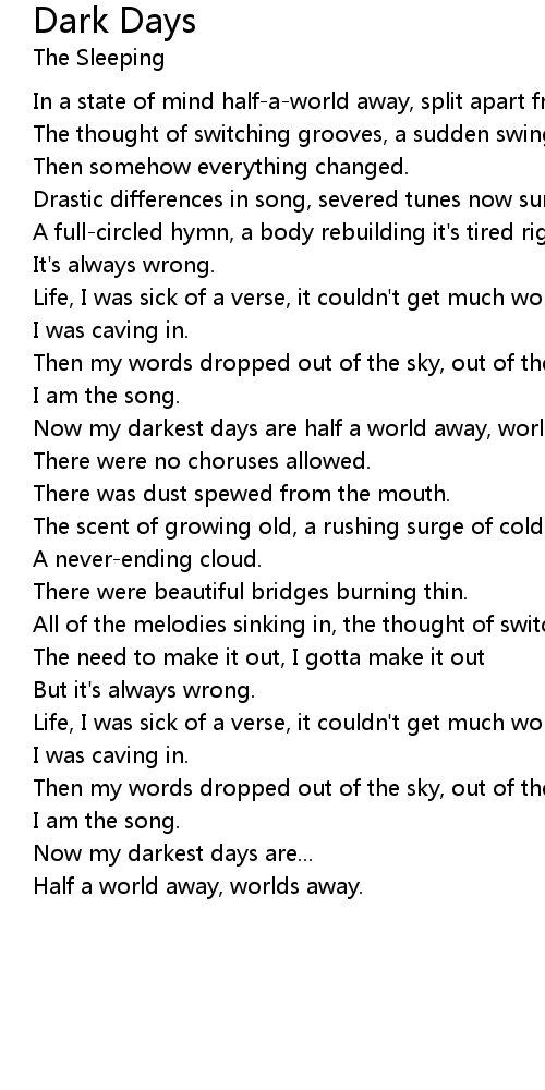 Now my darkest days are... |