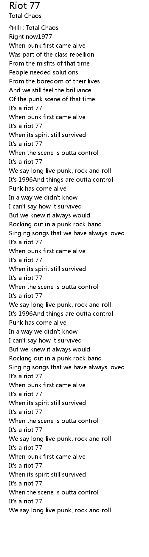 | 歌曲 | Riot 77 |