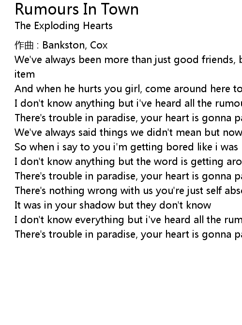 | I don' t know anything but i' ve heard all the rumours in town, | |