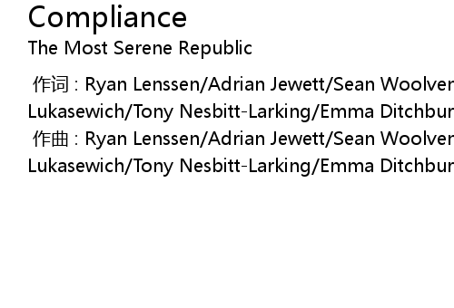 | [00:00.000] | 作曲 : Ryan Lenssen/Adrian Jewett/Sean Woolven/Nick Greaves/Simon Lukasewich/Tony Nesbitt-Larking/Emma Ditchburn |