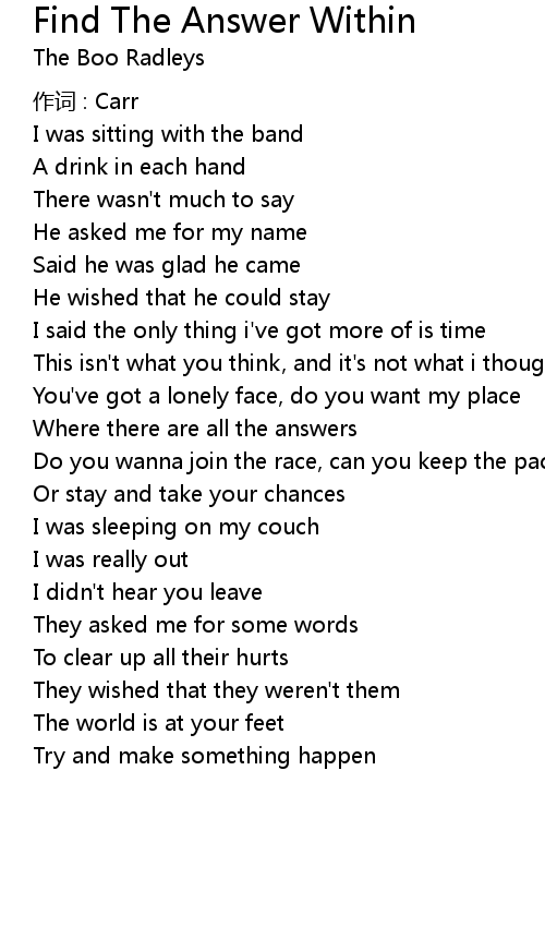 | 歌曲 | Find The Answer Within |