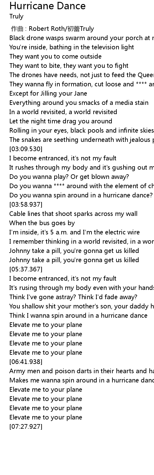 | [03:48.864] | Do you wanna spin around in a hurricane dance? |