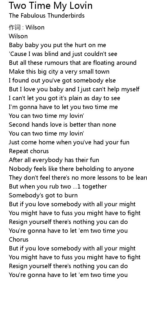 | 歌曲 | Two Time My Lovin |