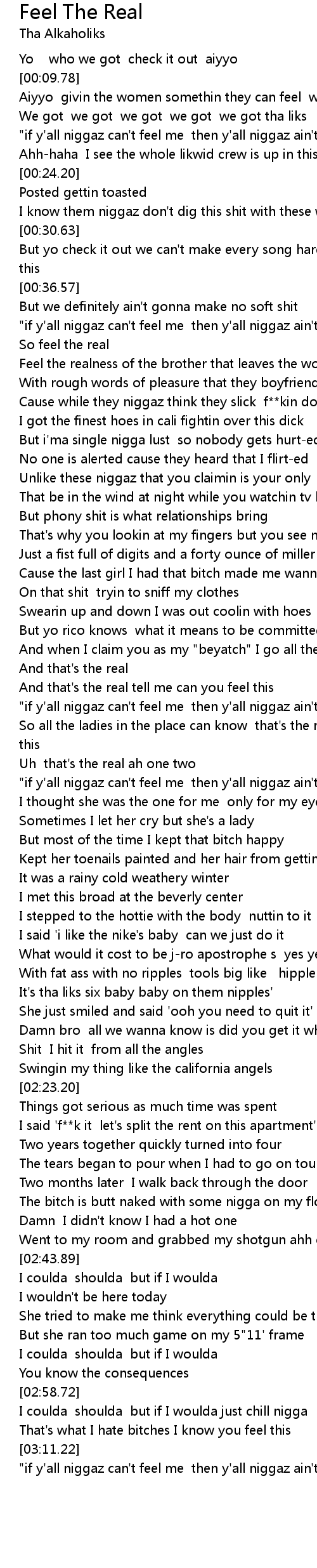 "if y'all niggaz can't feel me then y'all niggaz ain't real" |