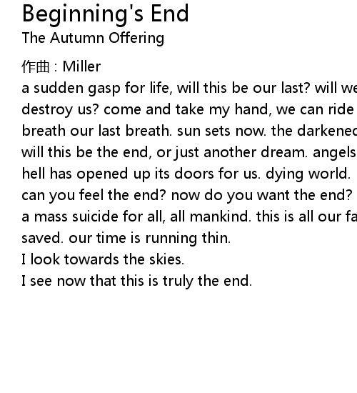 | 歌曲 | Beginning's End |
