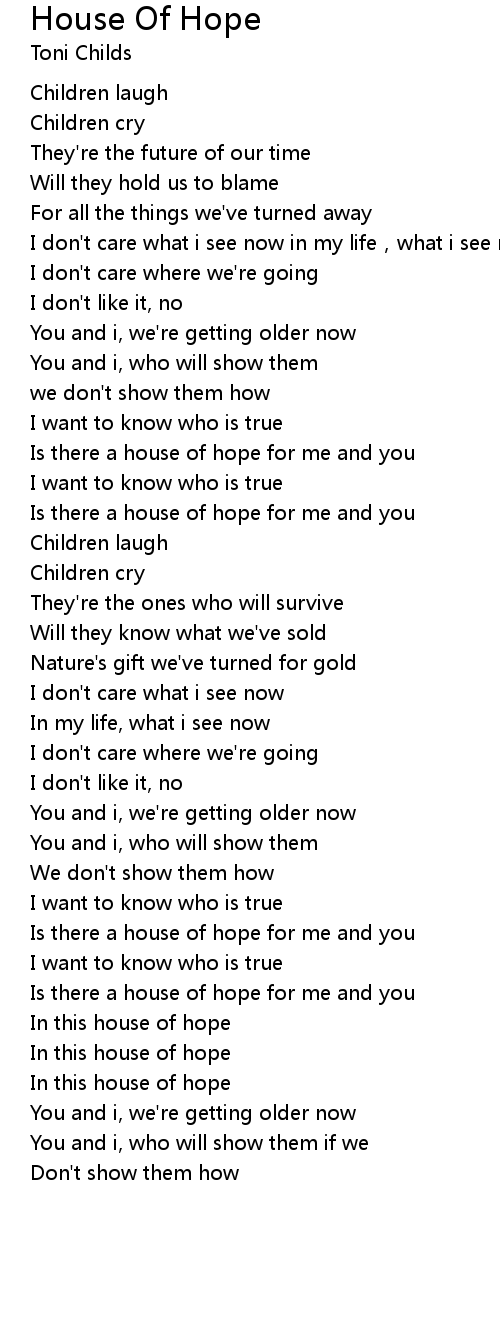 | Is there a house of hope for me and you | |