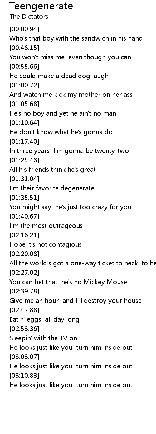 And watch me kick my mother on her ass |